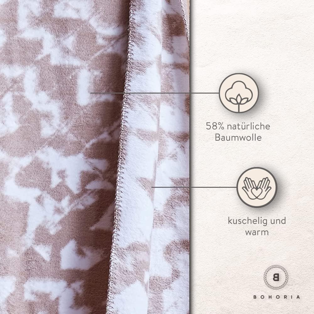 • Bringen Sie einzigartige Natürlichkeit in Ihr Zuhause. Unsere Kuscheldecken bestehen aus 58% Baumwolle, 32% Acryl, 10% Polyester und bringen so mit einer Größe von 150 x 200cm natürlichen Komfort ins Wohn- oder/und Schlafzimmer.