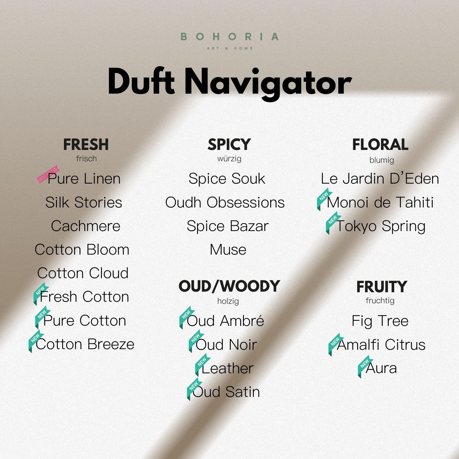 HÖCHSTE QUALITÄT - Alle Raumdüfte von BOHORIA werden von den renommiertesten Parfumeuren in Europa mit den erlesensten Rohstoffen hergestellt und überzeugen durch eine erstklassige Verarbeitung.