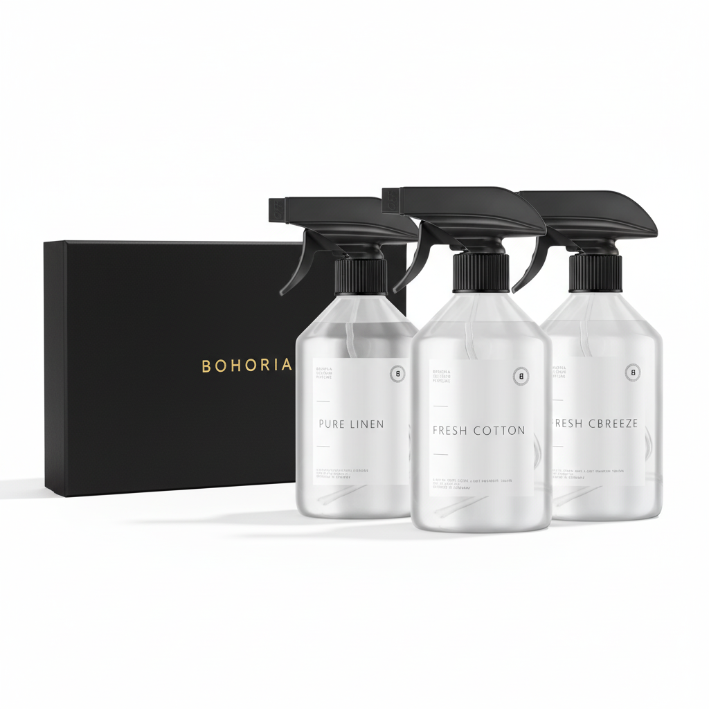 INHALT – 1x 500ml Original BOHORIA Premium Raumspray in hochwertiger Flasche. In den Varianten PURE LINEN, MYSTERIOUSLY MUSK, SILK STORIES, FIG TREE, LE JARDIN D'EDEN, SPICE SOUK hast du eine große Auswahl an unterschiedlichsten Duftnoten. Wer Wert auf hochwertige Düfte legt, wird die BOHORIA Raumdüfte lieben.